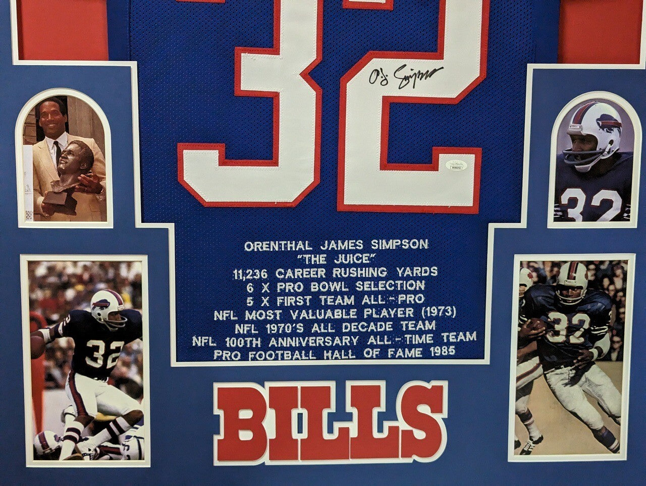 BUFFALO BILLS FRAMED O.J. SIMPSON SIGNED BLUE CUSTOM STAT JERSEY JSA COA!!!