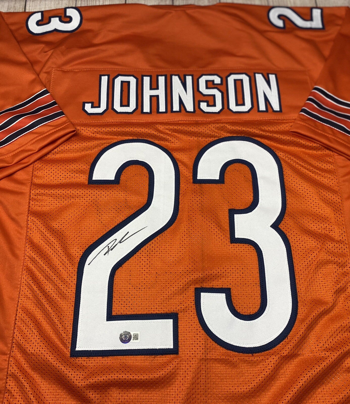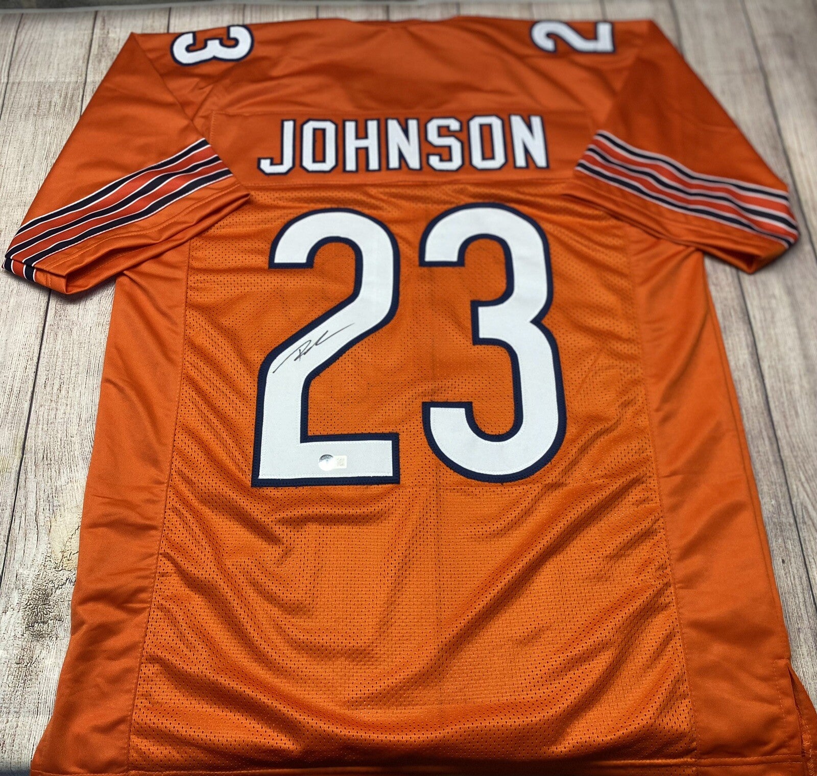 CHICAGO BEARS ROSCHON JOHNSON SIGNED CUSTOM ORANGE JERSEY BECKETT COA!!!