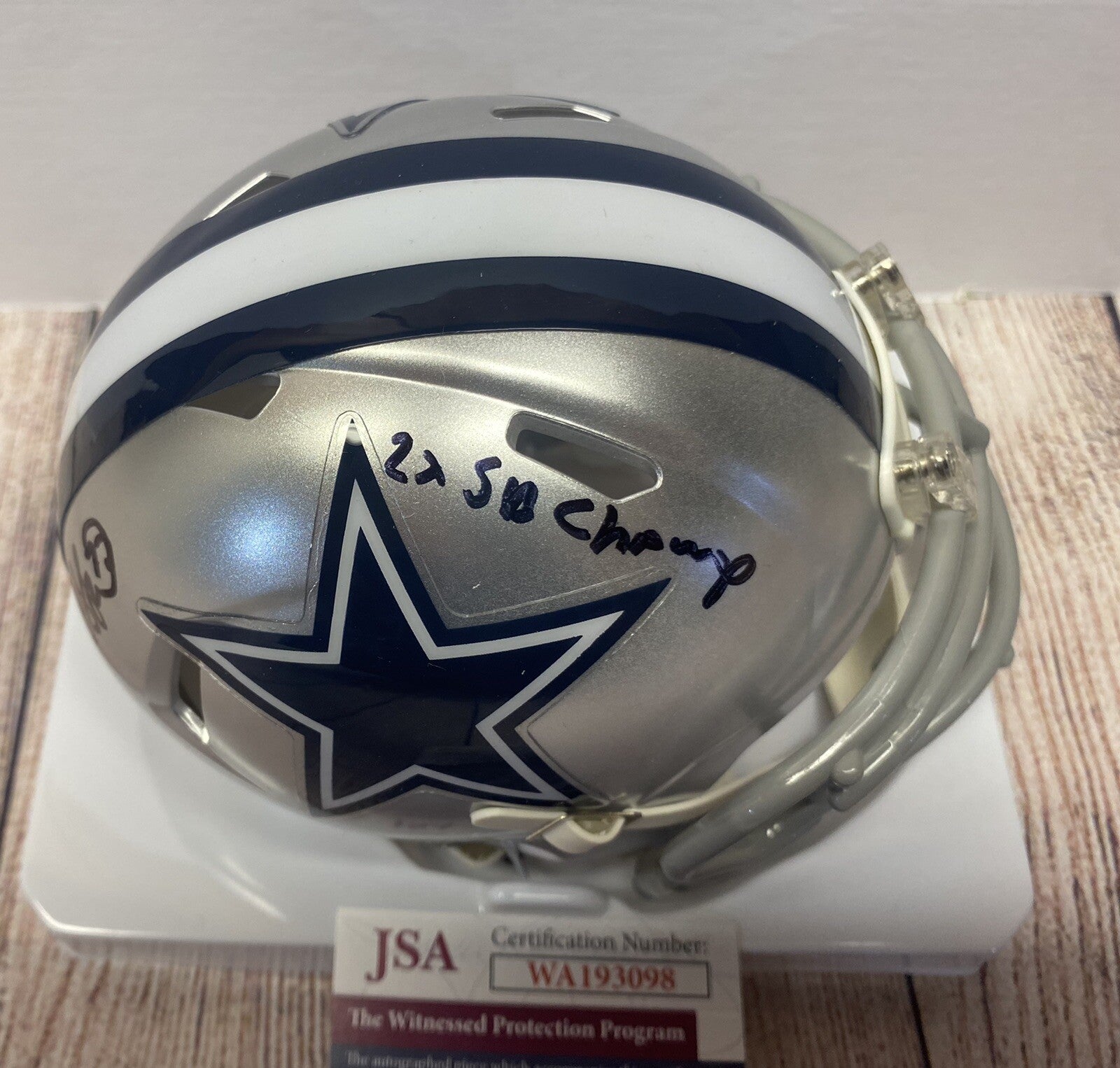 DALLAS COWBOYS JIM JEFFCOAT SIGNED MINI HELMET “2X SUPER BOWL CHAMP” JSA COA