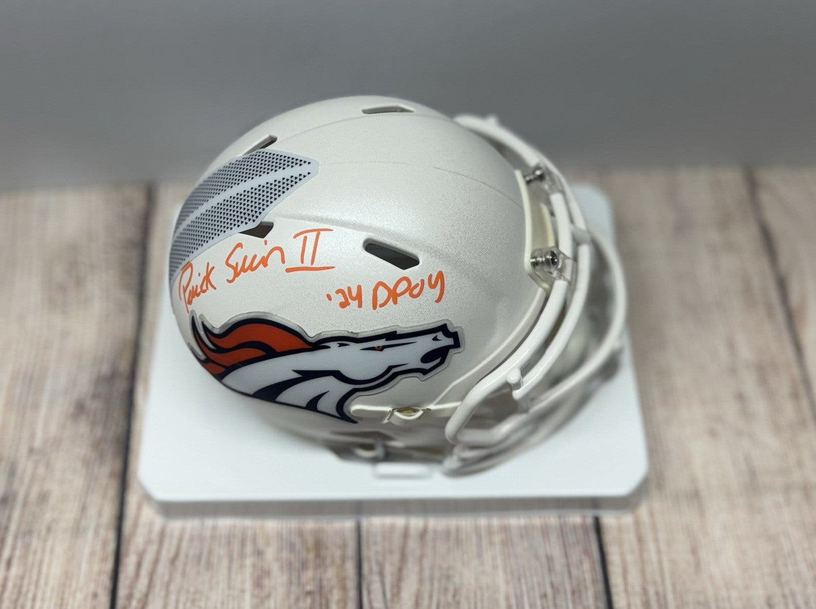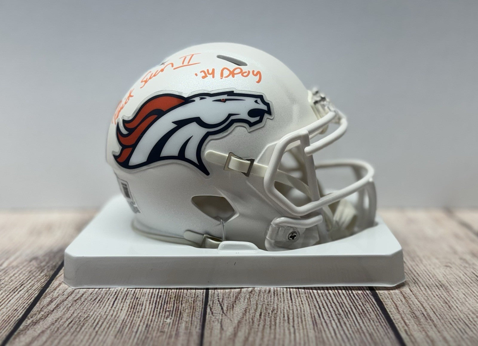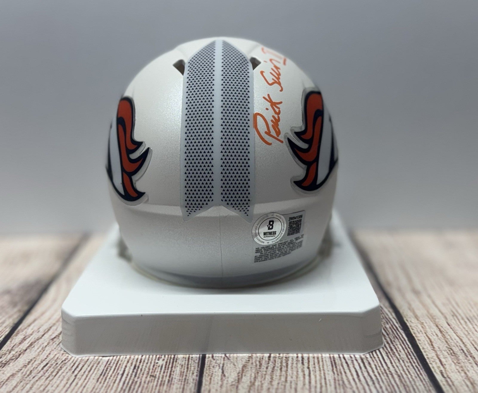 DENVER BRONCOS PATRICK SURTAIN II SIGNED SNOWCAPPED MINI HELMET 24 DPOY BECKETT