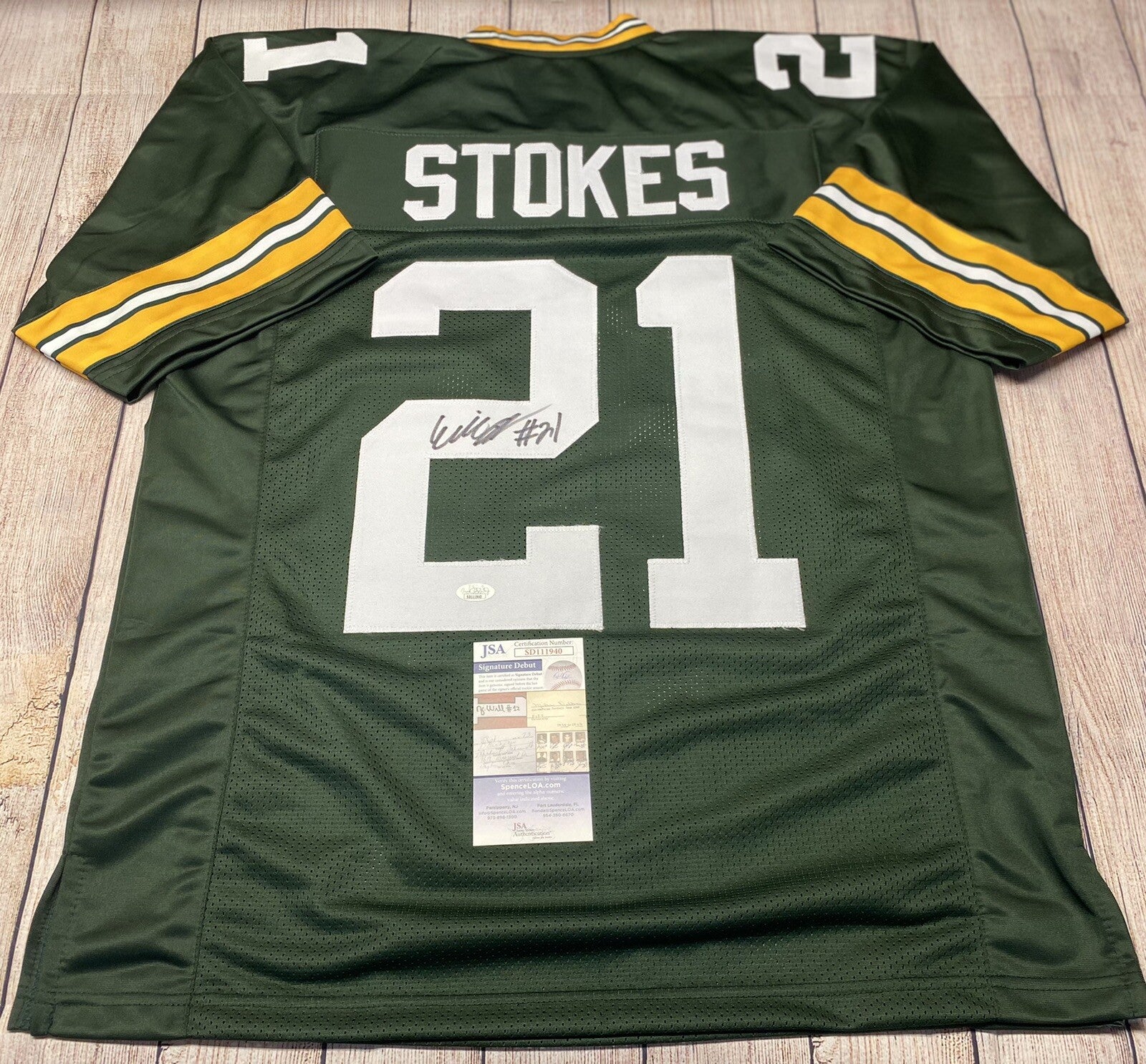 GREEN BAY PACKERS ERIC STOKES SIGNED GREEN CUSTOM JERSEY JSA COA!!!