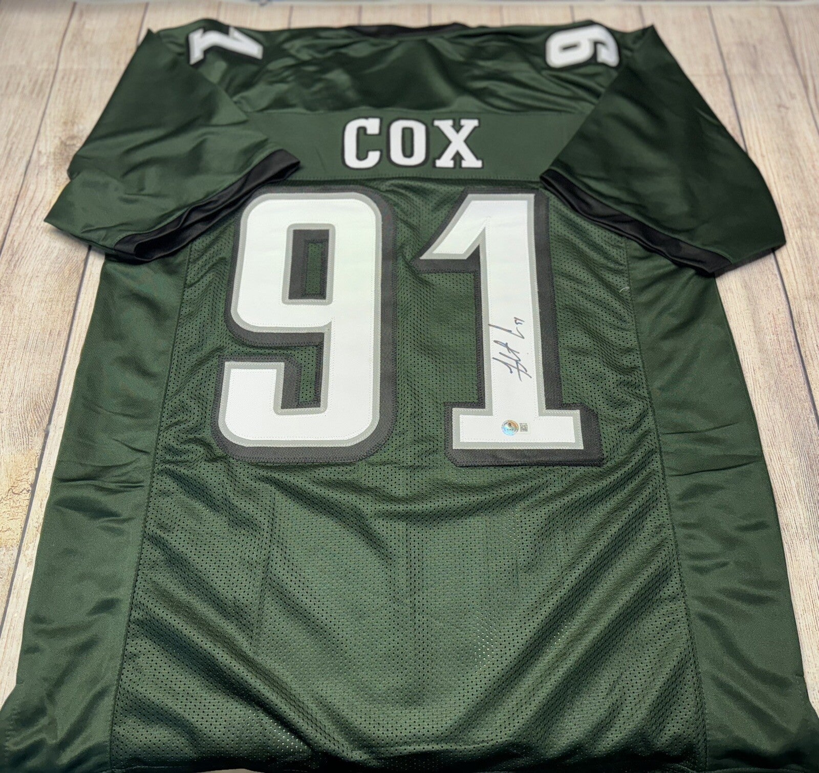 PHILADELPHIA EAGLES FLETCHER COX SIGNED GREEN CUSTOM JERSEY BECKETT COA