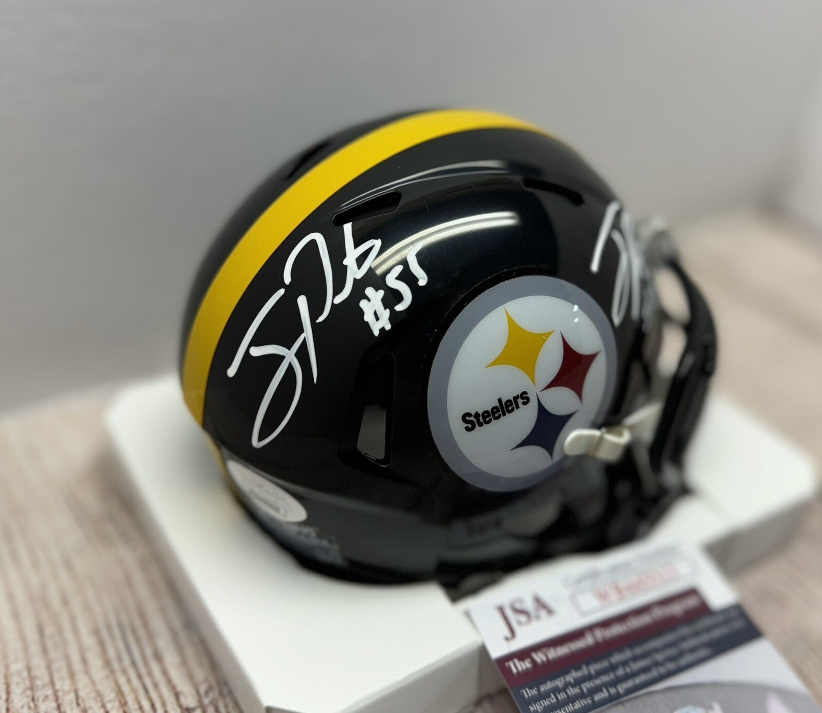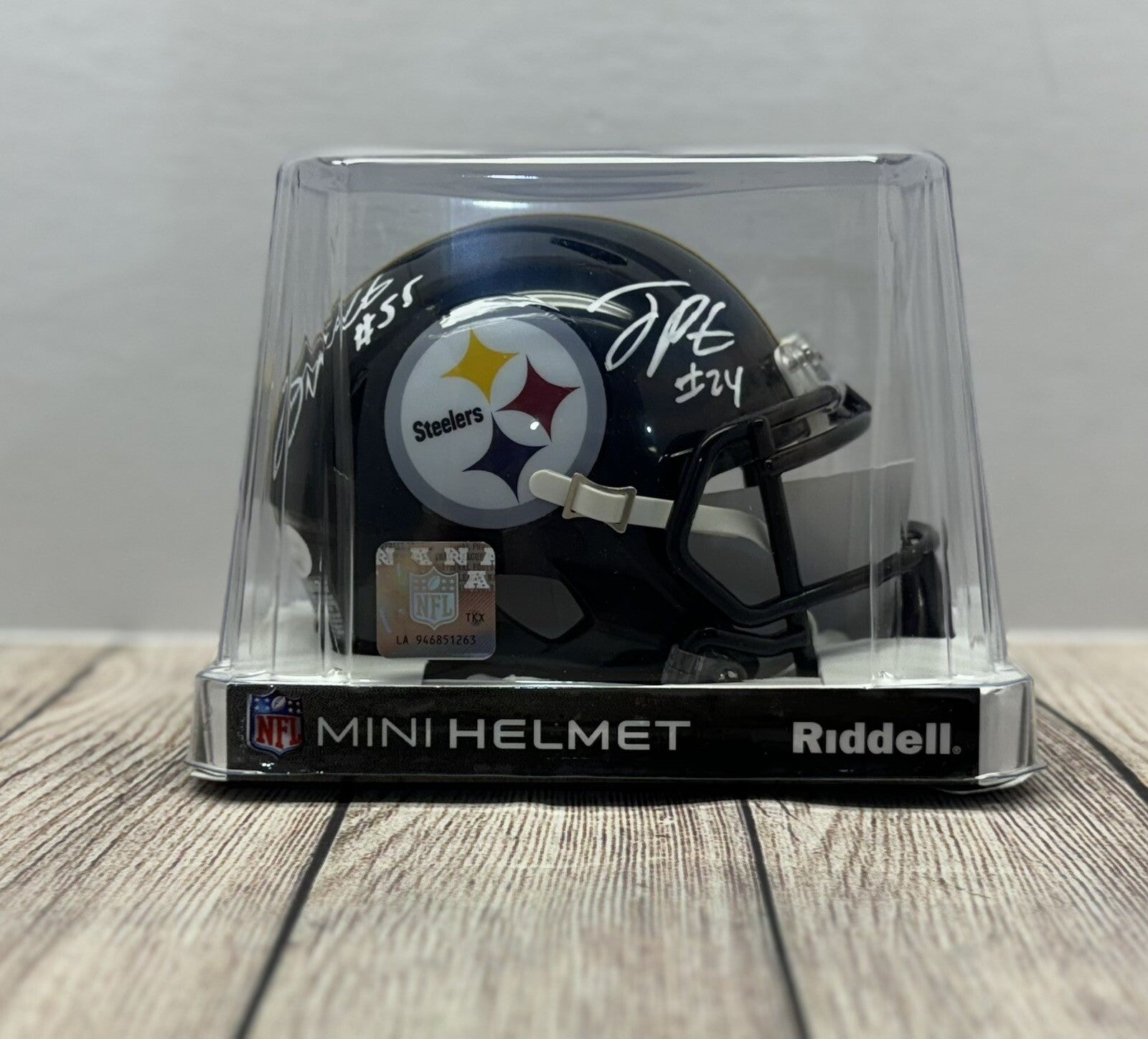 PITTSBURGH STEELERS JOEY PORTER SR & JR DUAL SIGNED MINI HELMET JSA COA!!