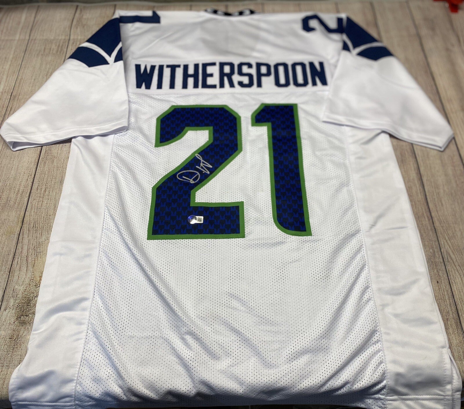 SEATTLE SEAHAWKS DEVON WITHERSPOON SIGNED CUSTOM WHITE JERSEY BECKETT COA!!!