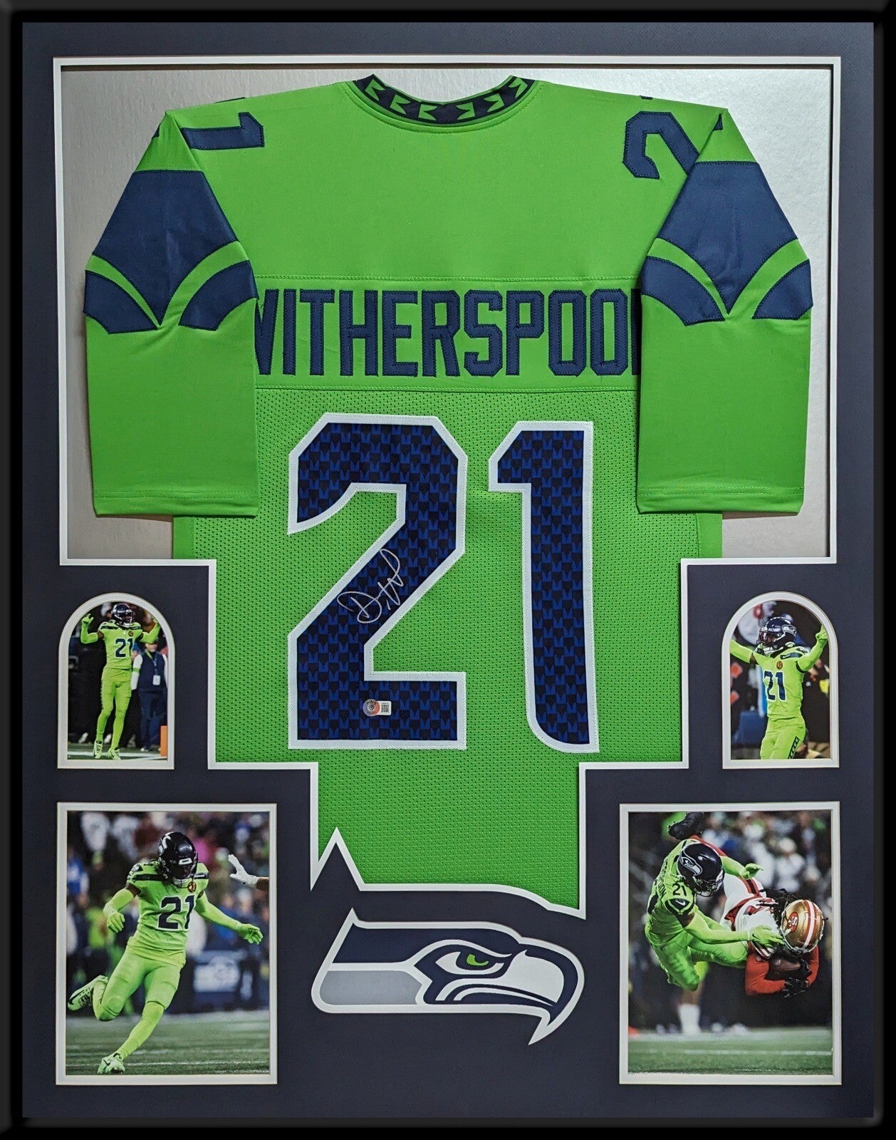 SEATTLE SEAHAWKS DEVON WITHERSPOON SIGNED FRAMED CUSTOM GREEN JERSEY BECKETT COA