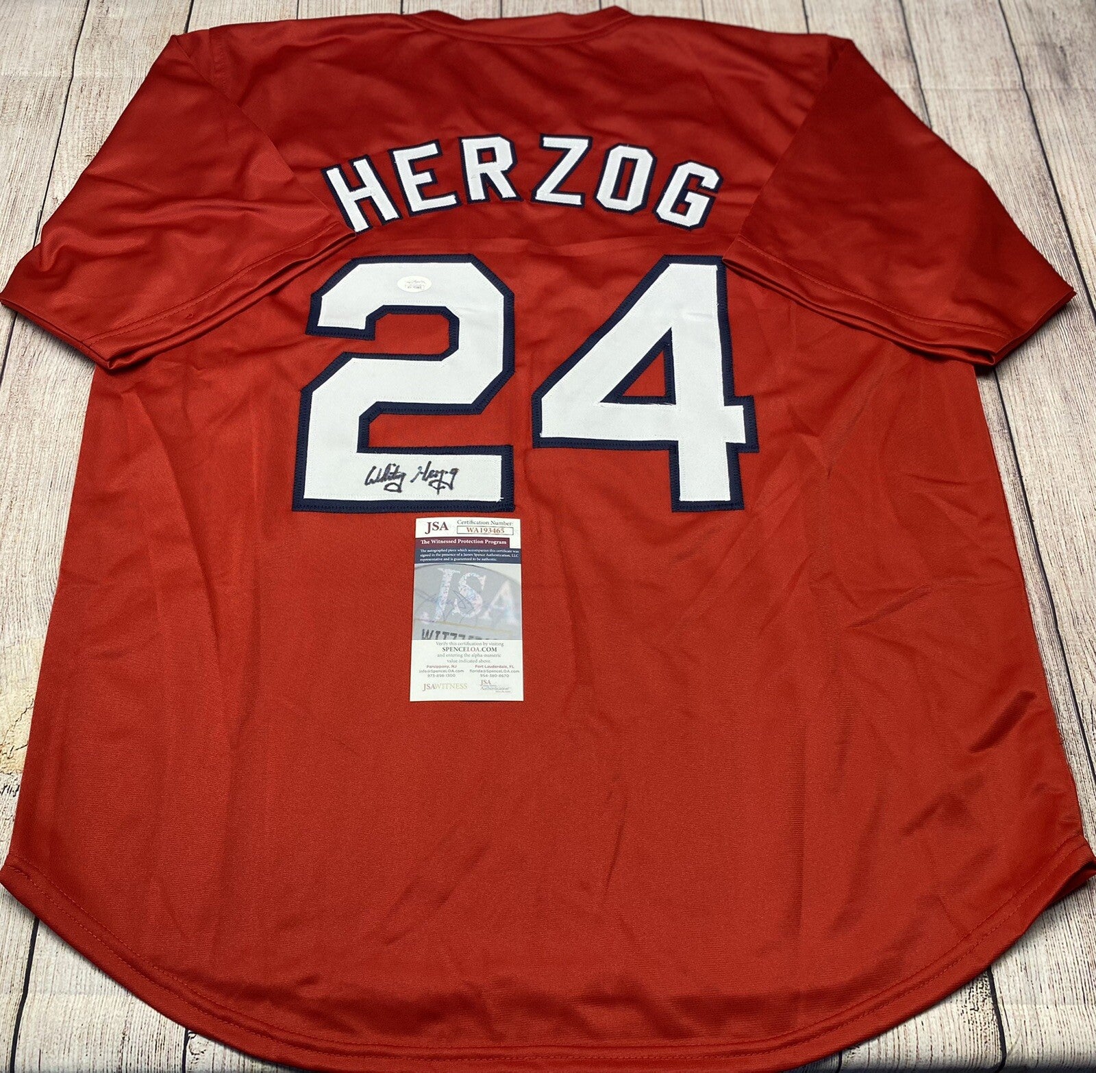 ST. LOUIS CARDINALS WHITEY HERZOG SIGNED RED CUSTOM JERSEY JSA COA!!!